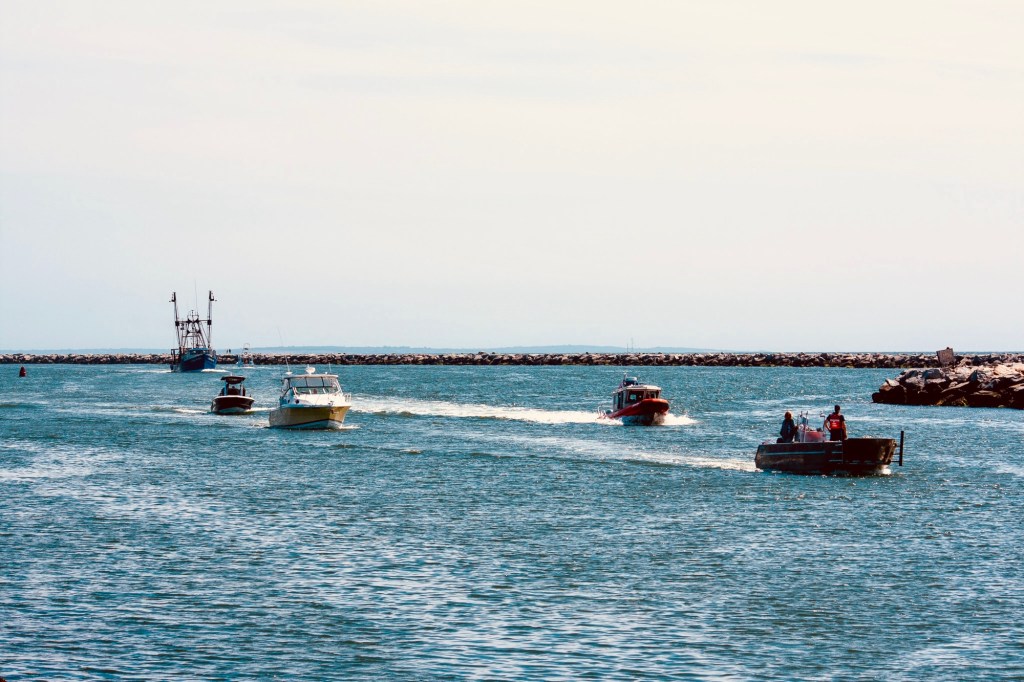Incoming boats at The Breachway at Galilee Harbor, Point Judith