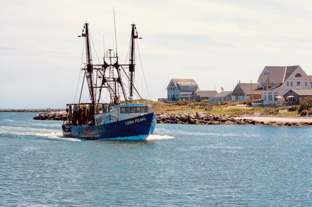 Commercial fishing boat, Lena Pearl coming into the Galilee Harbor at Point Judith.